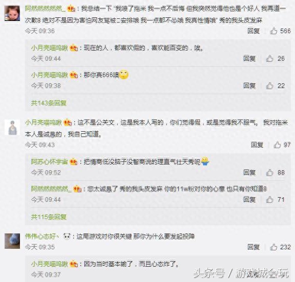 昨晚,虎牙王者荣耀主播小月亮在直播的时候,与斗鱼前王者荣耀职业选手拖米排位排到一起了,然而在游戏过程中,小月亮怒喷拖米带乱节奏,并随意骂人,引起很大的争议,而今天小月亮道歉,然而无关痛痒的道歉并未能得到拖米粉丝的谅解。