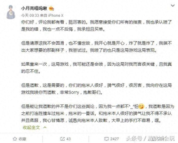 而在今天小月亮通过微博向拖米道歉,然而这道歉却被批很社会,并没有什么诚意。