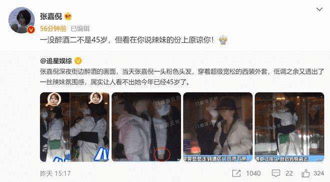 张嘉倪疑醉酒被偷拍 回怼:一没醉二没 45 岁
