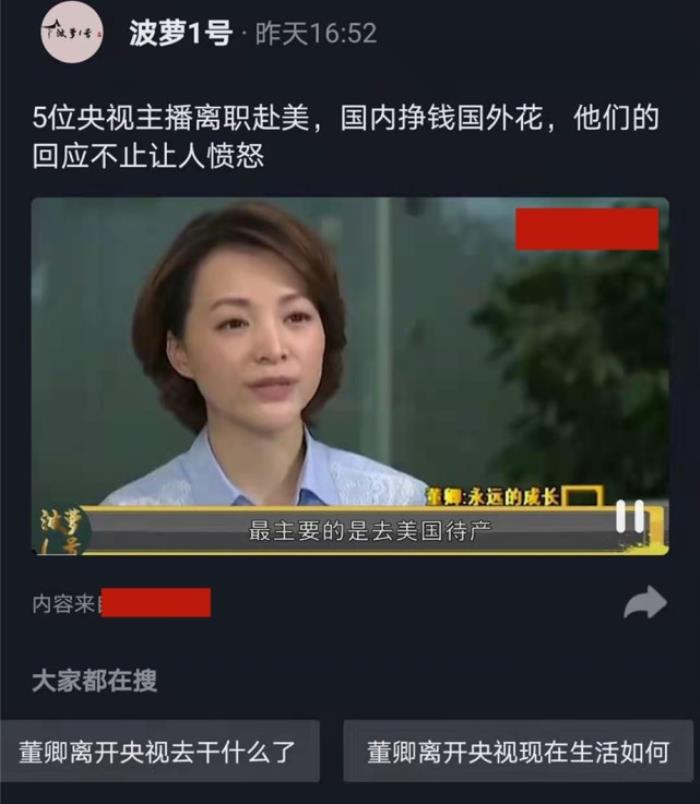 3月22日,董卿再被曝出遭央视开除,有网友发视频称董卿是因为赴美产子,和她此前营造的爱国人设自相矛盾,引起不满,所以才被央视开除。