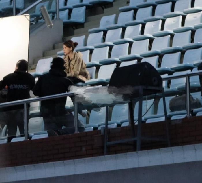 董卿当天一身休闲打扮,身边围满了工作人员,正在紧锣密鼓的录制节目中。