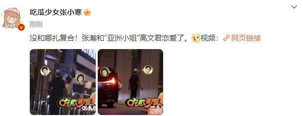 爆料指张翰的新女友是 1998 年出生的香港亚洲小姐季军高文君,二人相差了 13 岁。
