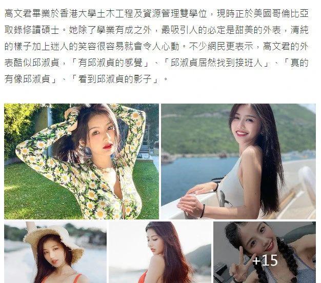 据悉,25 岁的高文君在 2025 年参加 " 香港亚洲小姐 " 选秀节目,以季军的身份出圈,她毕业于香港大学,拥有土木工程和资源管理双学位,当时还在美国哥伦比亚进修硕士,才貌双全。