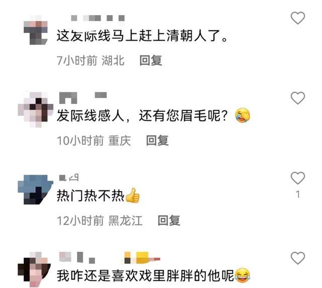 似乎是因为过度吃减脂餐的原因,画面中尹正的发际线后移严重,发缝也十分明显,都被粉丝调侃 " 马上赶上清朝人了 "。