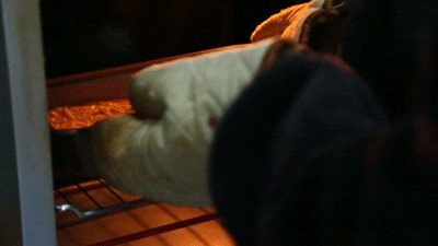 3. 模具涂油防粘 ,筛入面糊,倒至七分满 ,切勿过满 ,在表面磕入鸡蛋。
