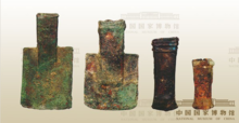 西周青铜器的类型比商代有了显著变化。有些商代常见的器物,如酒器中的方彝、卣、觚、爵等,逐渐减少或绝灭,新器物又不断出现,如乐器中的钟,兵器中的戟、剑等。器物纹饰从繁缛趋于简易,逐渐减少了过去所带有的神秘色彩,器壁也从厚重而趋于轻巧。 [52]
