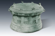 青铜鼓酒。从成王时的《尚书·酒诰》,到康王时的大盂鼎铭文,都讲到必须遵奉周文王的告诫,不得纵酒。反映到青铜制造的礼器上,商朝常见的许多酒器,西周时逐渐归于消失。 [19]