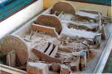 西周车马遗骸 [55]佩饰有几十种名目。制造一辆车,要有多种熟练工匠的密切协作,构成了综合性的手工业。 [54]