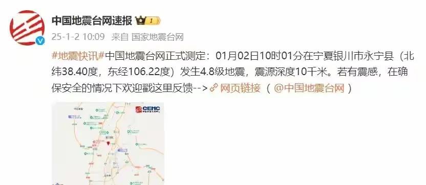 惊动宁夏!4.8级地震袭来,乌海震感强烈引发关注!