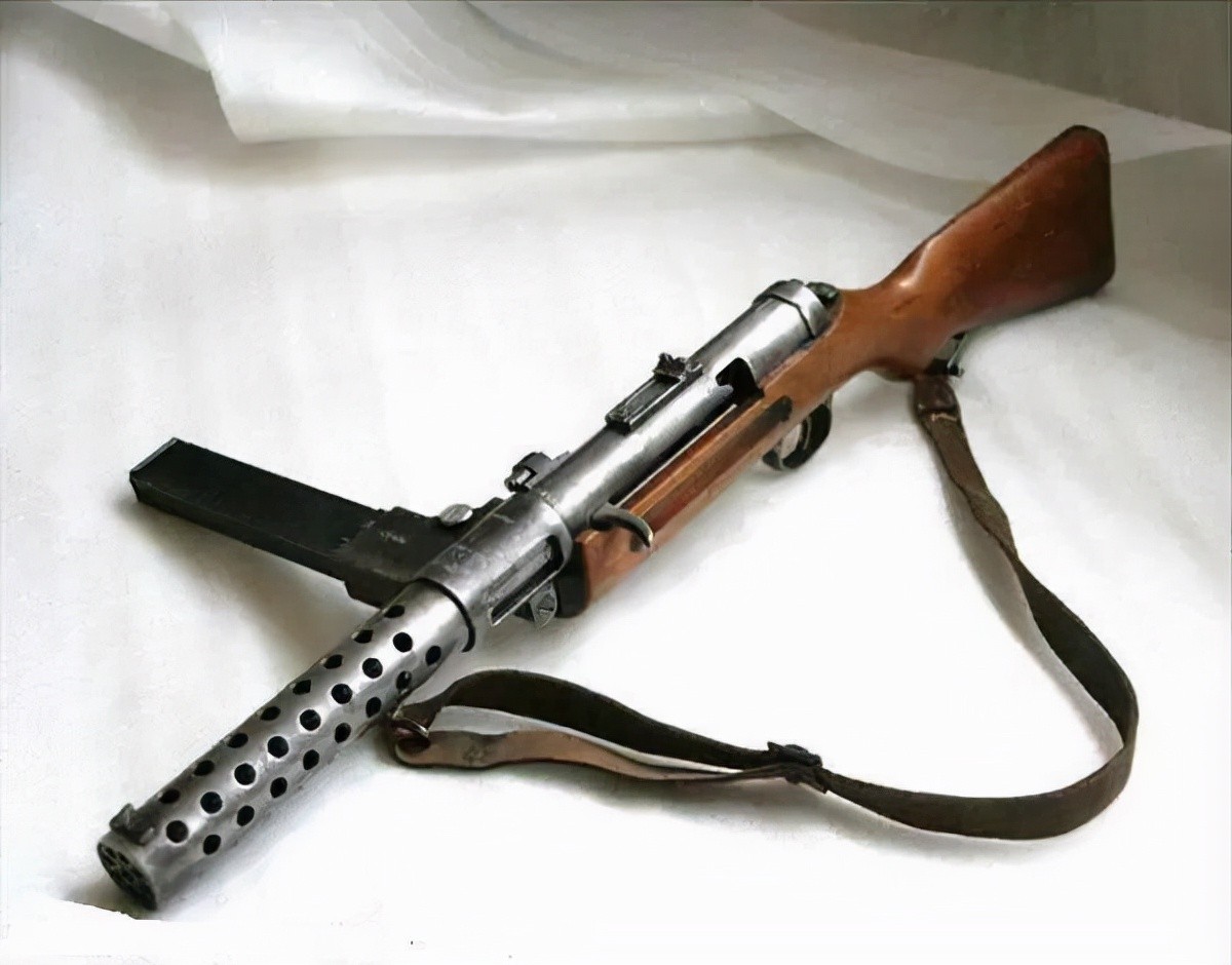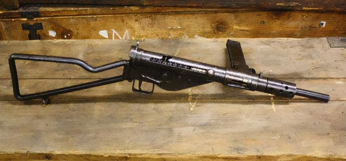 为什么叫花机关?因为其枪口部位有1圈散热孔,所以我国民间称其为花机关枪。该枪与司登冲锋枪弹夹都在边上,一些影视作品就玩穿越,用司登冒充花机关。