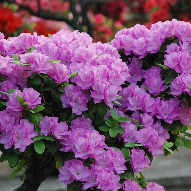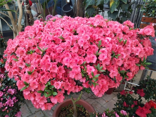 杜鹃花又叫映山红,品种繁多,花色绚烂,花叶兼美,地栽盆栽都可以,是中国的十大传统名花之一。杜鹃花的花色非常多,有红色、粉色、紫色、黄色、白色,还有很多复色系等其他色系,品种也可以分为春鹃、夏鹃、西鹃、东洋杜鹃,花型也有套瓣型、褶边型等。杜鹃花的观赏价值很高,花量大,花期长,所以深受人们的喜爱。