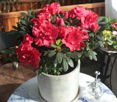 杜鹃喜欢温暖湿润的环境,如果空气湿度过低,会造成杜鹃干尖黄叶,严重的话还可能导致落叶。所以,如果我们养护杜鹃的地方通风比较好,比如在户外或者半封闭阳台,可以在叶片周围喷一点水,保持一定的空气湿度。