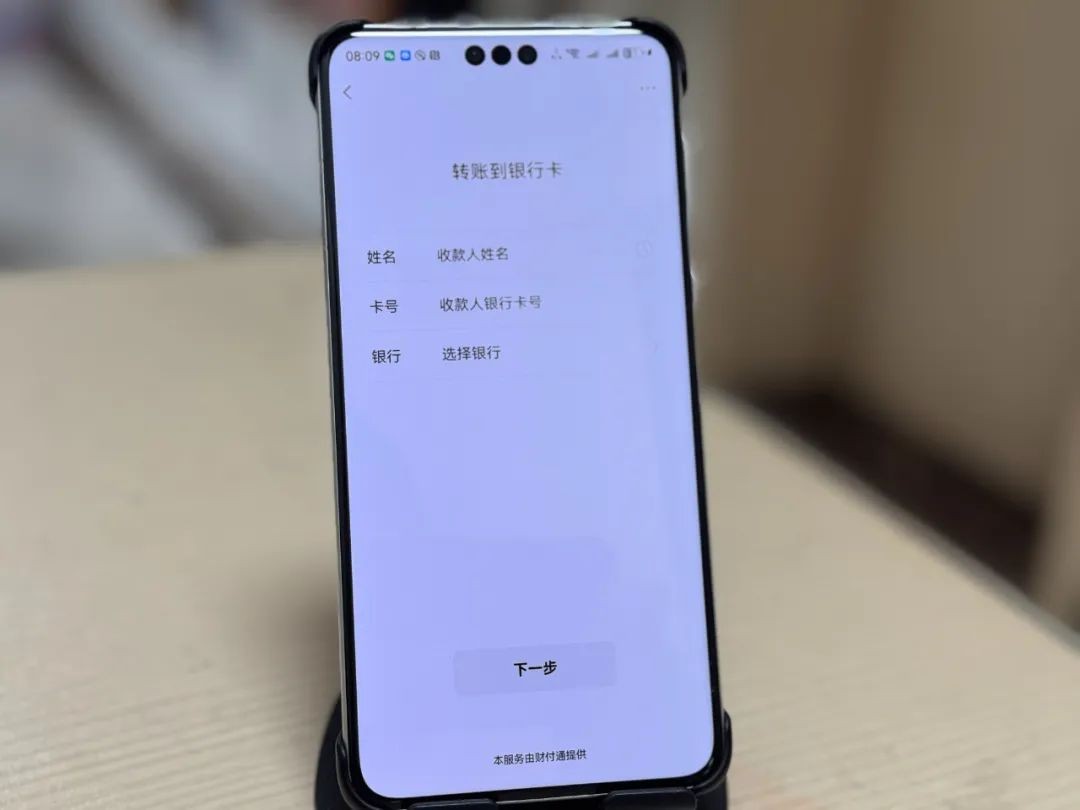 在“收付款”页面中,向下滑动,你会看到一个“向银行卡或手机号转账”的选项。点击它。这里有两个选项,一个是向银行卡转账,一个是向手机号转账。我们选择“向银行卡转账”。