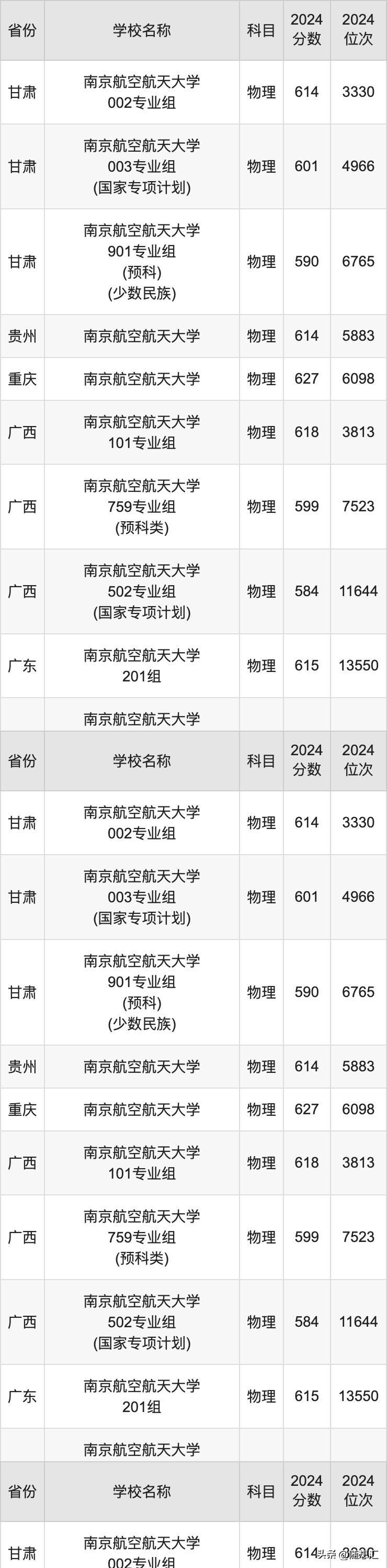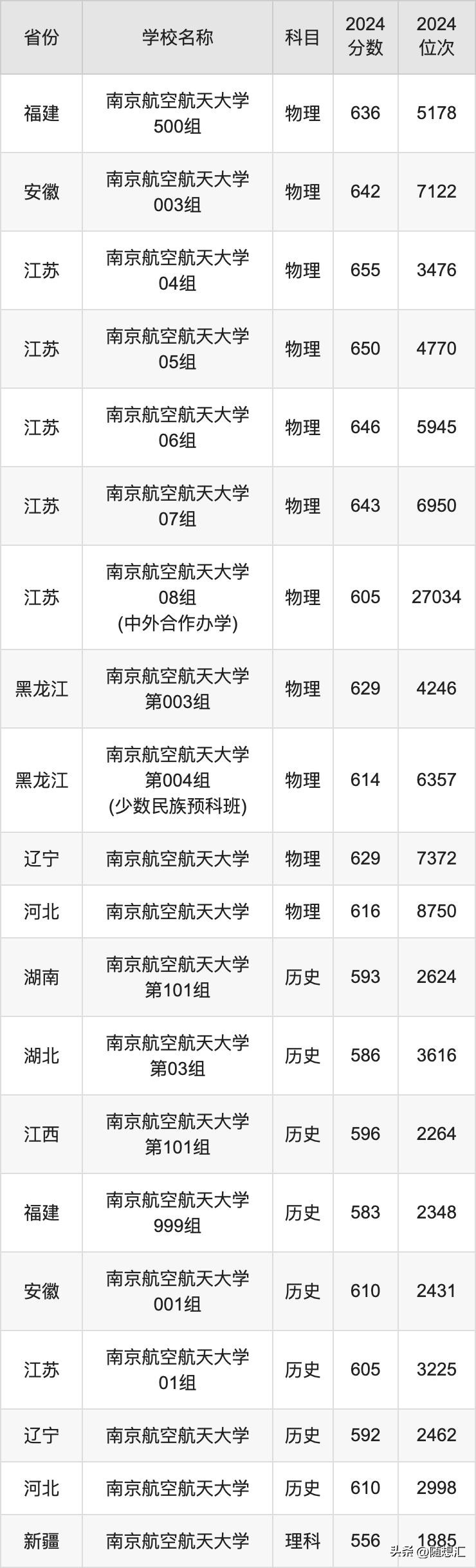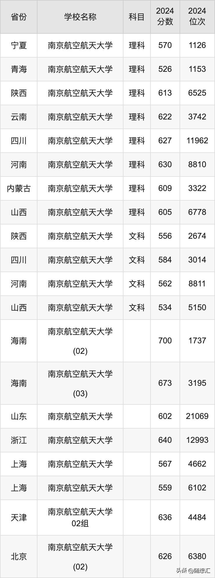 2024南京航空航天大学录取分数线汇总:全国各省最低多少分能上