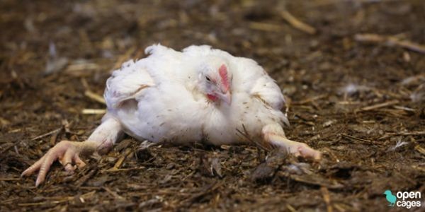 骨骼的发育因为跟不上长肉的速度,很多肉鸡都难以正常站立。如果幸运的话,还可以笨重地往前挪动,可以正常喝水吃食。然而当特别严重的时候,它们会直接站不起来,只能一直坐在沾满粪便的垫料上,甚至无法饮水。它们这样会痛吗?会的。有科学家发现如果让这些鸡在普通饲料和普通饲料+止疼药之间二选一,它们会选择去吃加了止疼药的饲料。