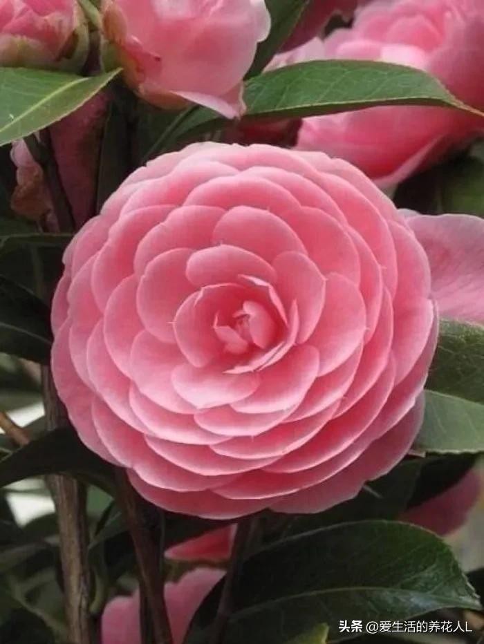 粉红色十八学士,花瓣旋转的非常漂亮,一层一层的,均匀有序。美观