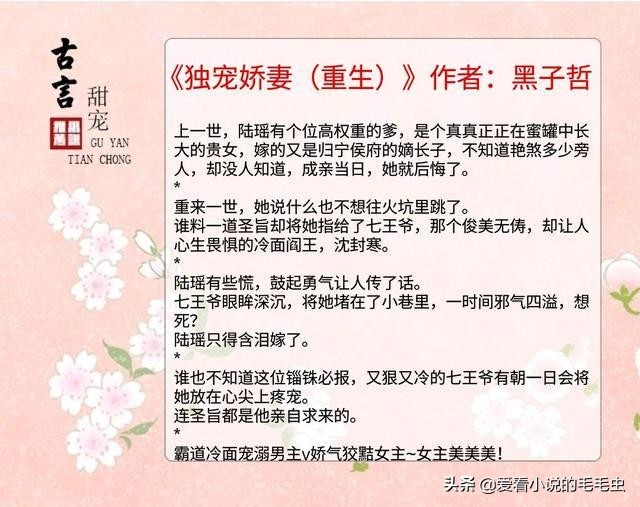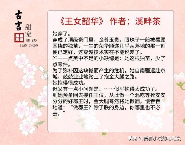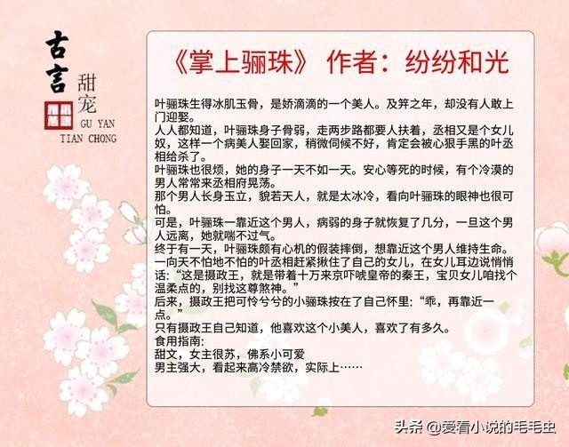 大家好,我是毛毛虫,今天给大家推荐5本古言甜宠文:女主被全家宠在掌心,爹娘疼爱,夫君宠溺!