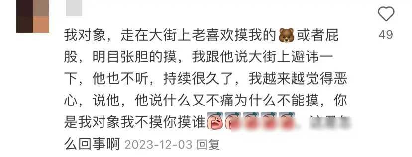 听了这番描述,我不禁感叹,这样的男人实在让人寒心。私密部位是绝对不能随意触碰的,更何况是在公共场合,这种行为简直就是对她的不尊重和侵犯。她曾试图和他沟通,但他总是以“出于爱意”为借口,对此置若罔闻。