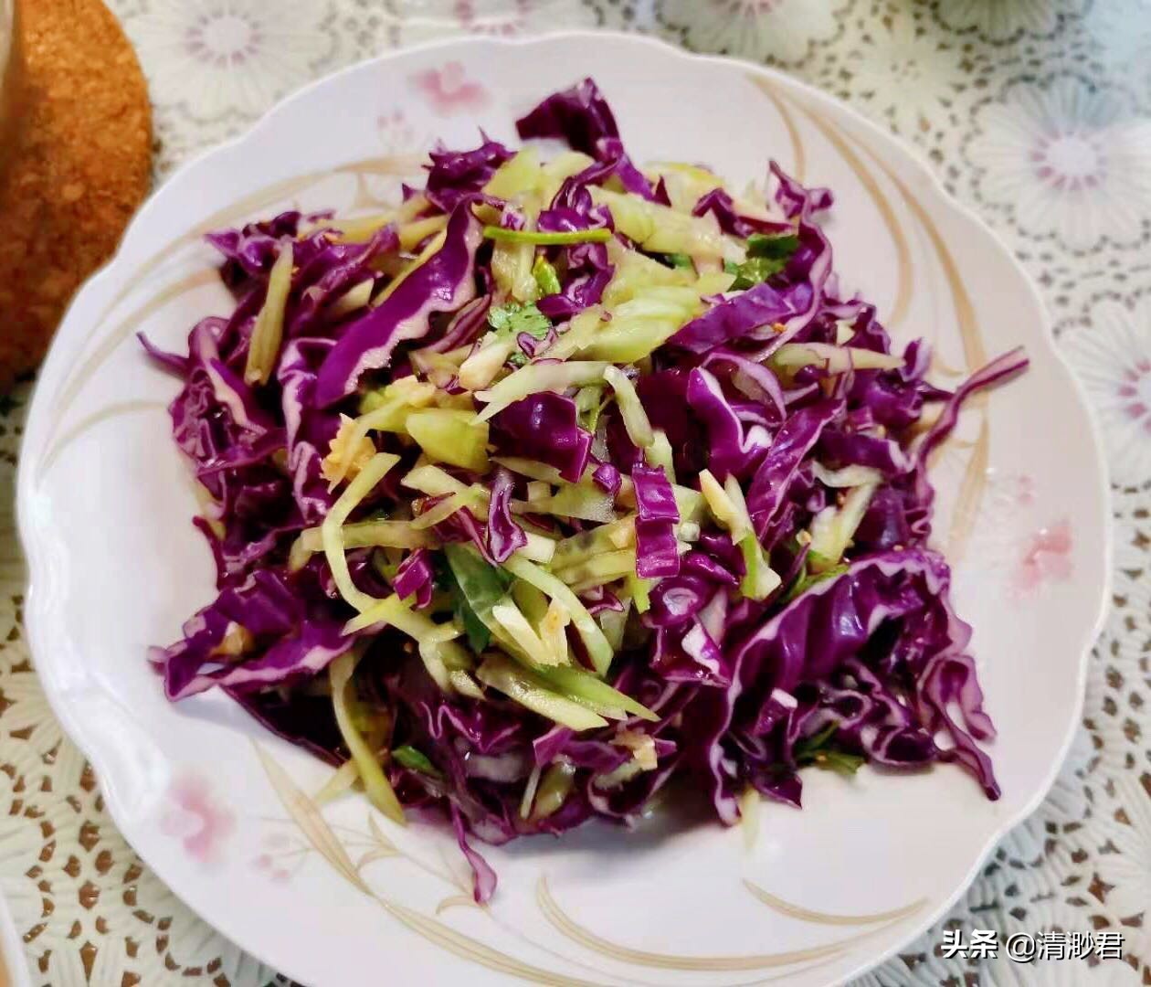 {小感}:紫甘蓝的花青素、维生素C含量较高,属于低卡高纤维的蔬菜,适合凉拌,也是冬季进补的好食材。