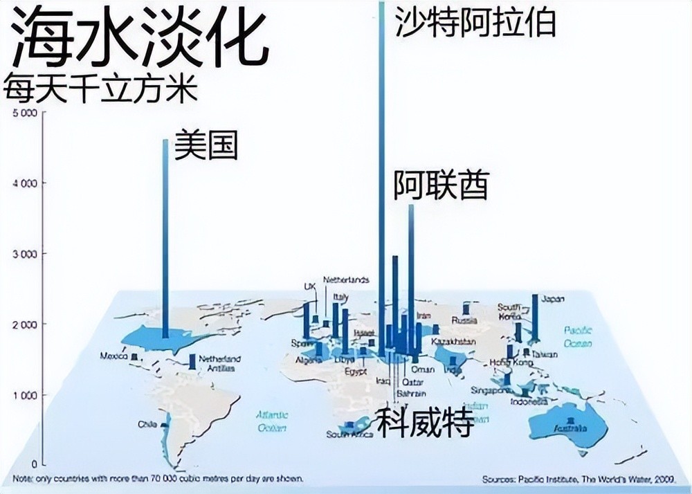 13、沙特年均降水量仅有200毫米,在这里雨成了稀罕物,居民饮用水部分来自地下水,部分来自海水淡化,沙特是世界上最大的淡化海水生产国。