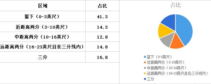 威斯布鲁克本赛季各区域投篮占比