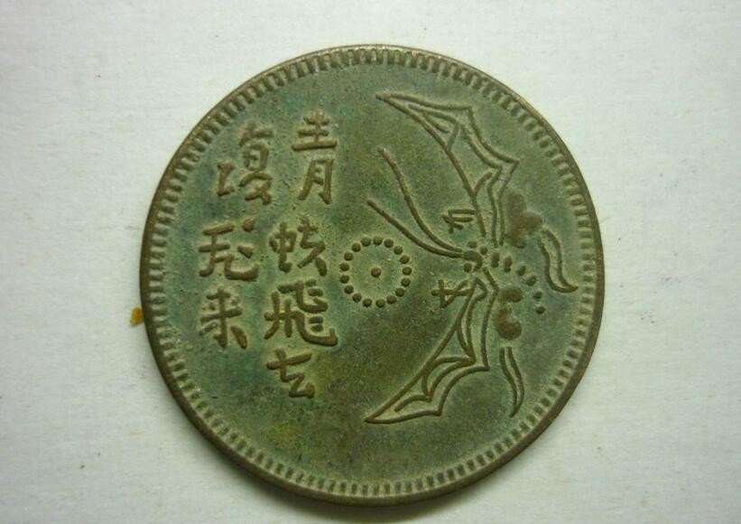 干宝《搜神记》卷十三记载:南方有一种虫,名叫(tun yu),一名叫蠋(zei zhu),又叫青蚨。此虫形状像蝉,但比蝉稍大一点。其肉味道辛美,可食用。青蚨生子时一定生在草叶之上,大小如蚕子。人如把青蚨之子取走,那蚨母立即就会跟着飞来。不论距离有多远,哪怕是把青蚨之子藏起来,蚨母也能知道其子在哪里。人捉了青蚨母子,用其母的血涂八十一枚铜钱,又用其子的血涂另外八十一枚铜钱。每次买东西时,或者用涂了母血的钱,或者用涂了子血的线,都会在随后自行飞回来,可以重复使用。