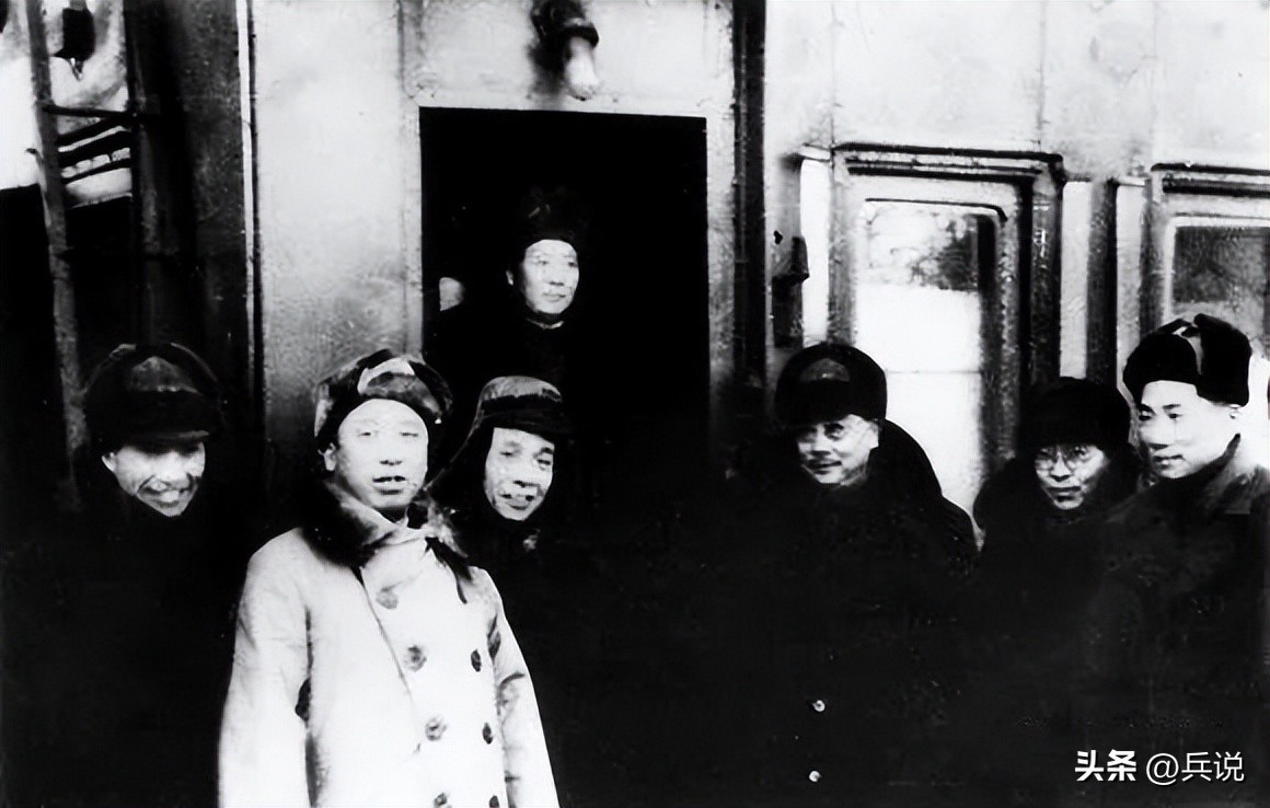 1949年12月9日,主席和杨奇清、滕代远、李富春、李克农、余光生、岸英在满洲里站台