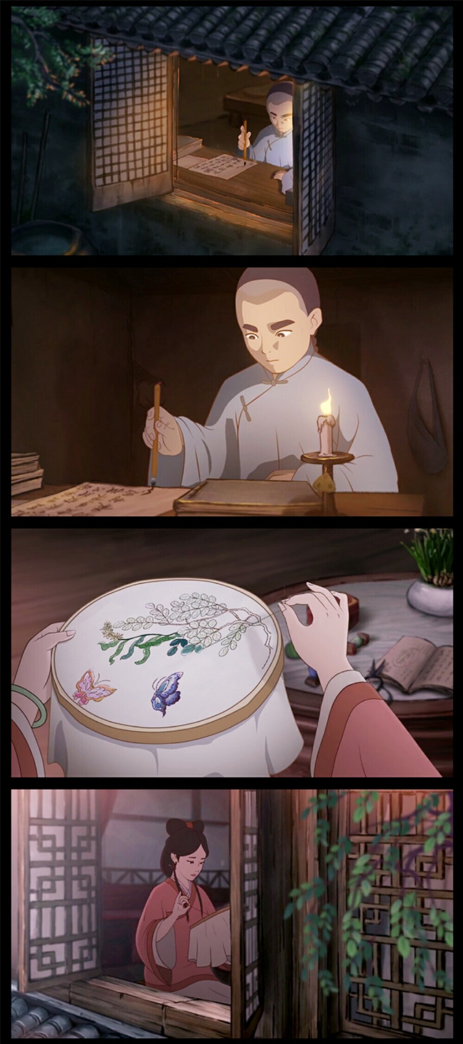 作为一部以古典文学作品为基础的纯手绘动画,在画面意境上具有浓浓的中国风,用色清淡雅致,与故事背景相得益彰。辅以细腻的人物刻画和贴合的音乐,美好却注定悲剧的爱情也增添了一份余韵颇长的古典气息。