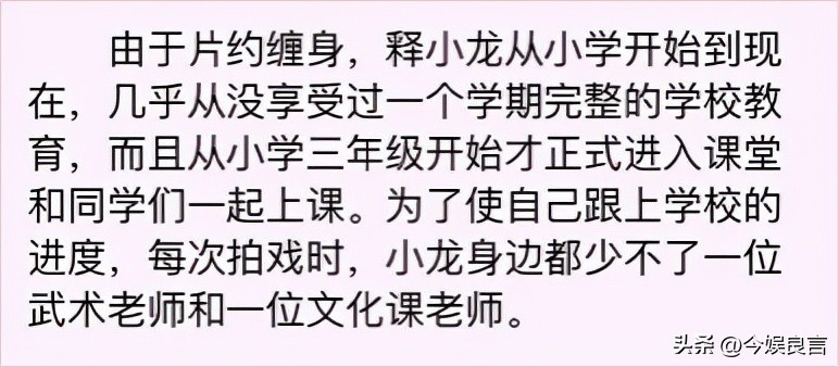 也正是因为这样,释小龙虽然被剥夺了享受童年的权利。