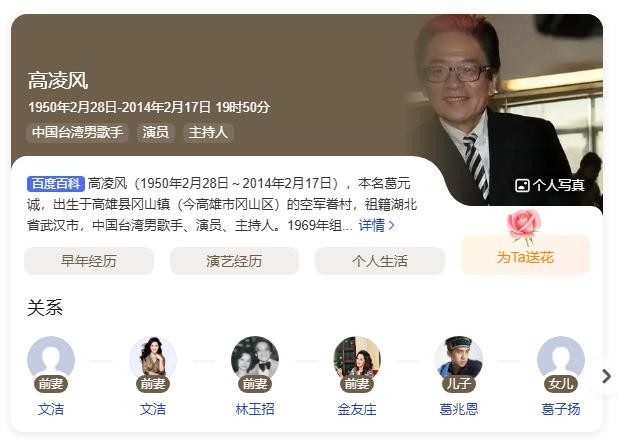高凌风的第一任妻子林玉招,是电影《女朋友》中女主角的原型。