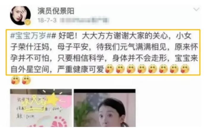 另一方面直到2018年倪景阳在微博发布母子平安的内容,大家才知道“裴老师”原来已经结婚了。