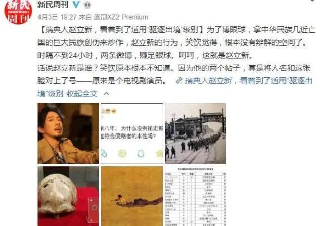 但这已经不是道歉就能解决的事情了,随着他公派留学又入瑞典籍的身份被曝光,甚至有官媒点名赵立新应该驱逐出境。