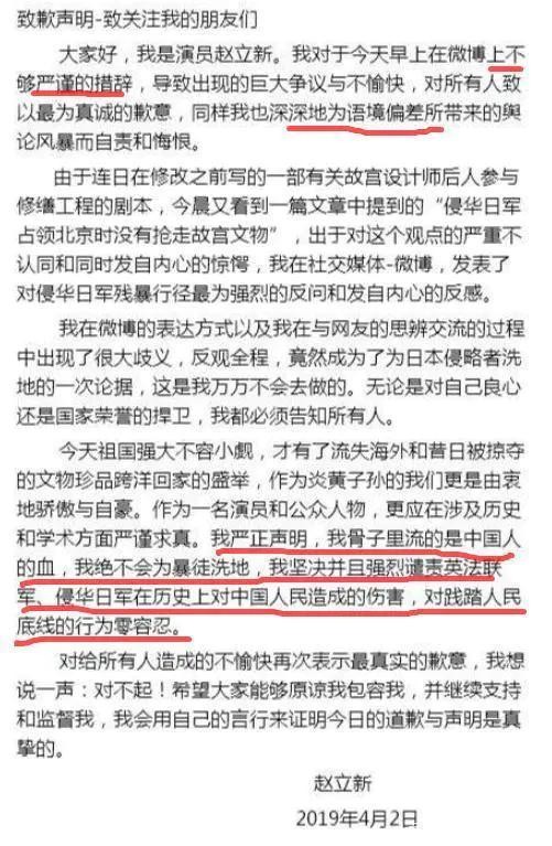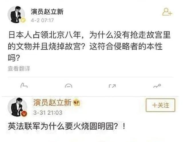 经《声临其境》走红仅1年后,赵立新在个人社交平台发文对中国的历史发出了质疑,公然挑战中国人的民族精神与道德良知底线。