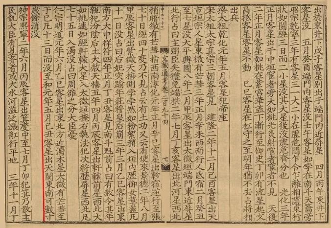 △【配图5. 《文献通考》卷二百九十四中记载,北宋至和元年(1054年)客星出没】
