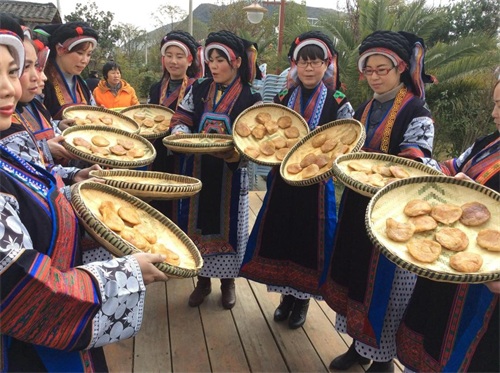 油团粑是布依族的传统食品。每年农历正月结束的那一天,布依族称"了年",家家户户都要做油团粑。油团粑主要原料是糯米、菜油,其做法是:先将蠕米筛簸干净,放入清水中浸泡一夜,滤干,用石碓舂成细面,取出与黄花水、菜油、春芹搅拌均匀,捏成鸡蛋状,入油锅摊成园形饼状,呈金黄色时起锅,待冷却后入坛封存,常年随时可以取食。