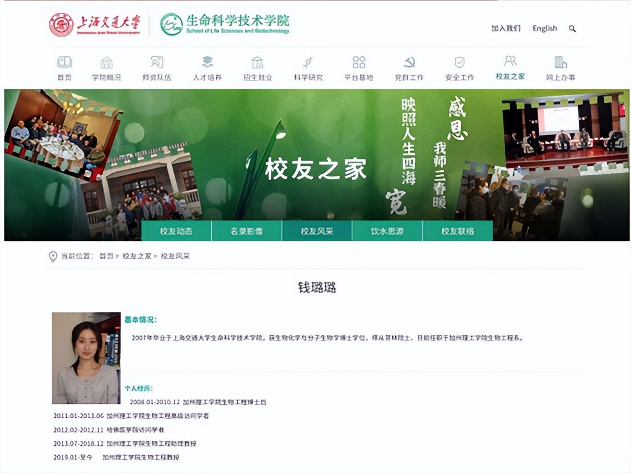 考研之路是非常艰辛的,但是,她挺了过来,如愿进入上海交通大学生命科学技术学院学习,并于2007年获生物化学与分子生物学博士学位,顺利毕业。
