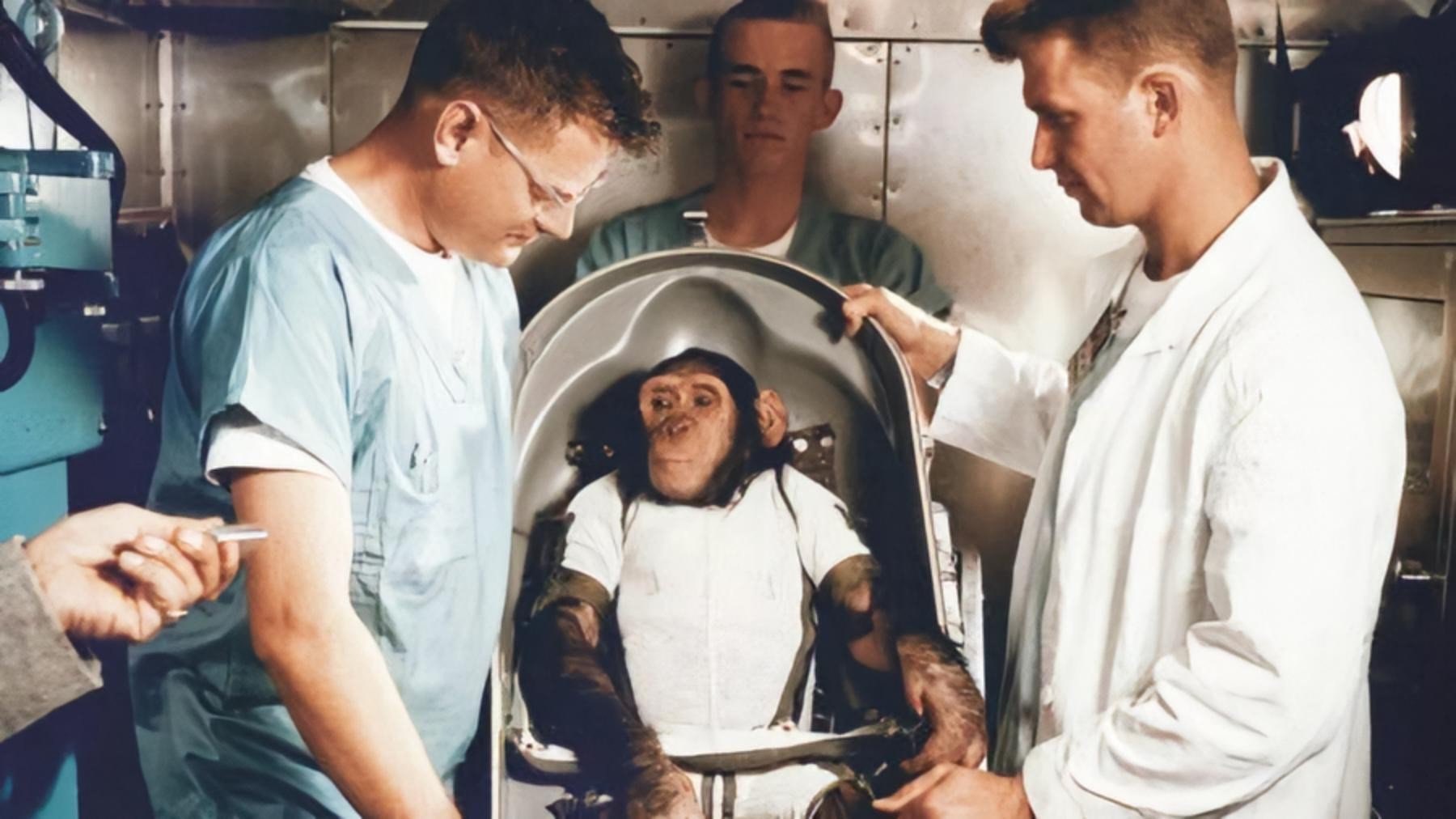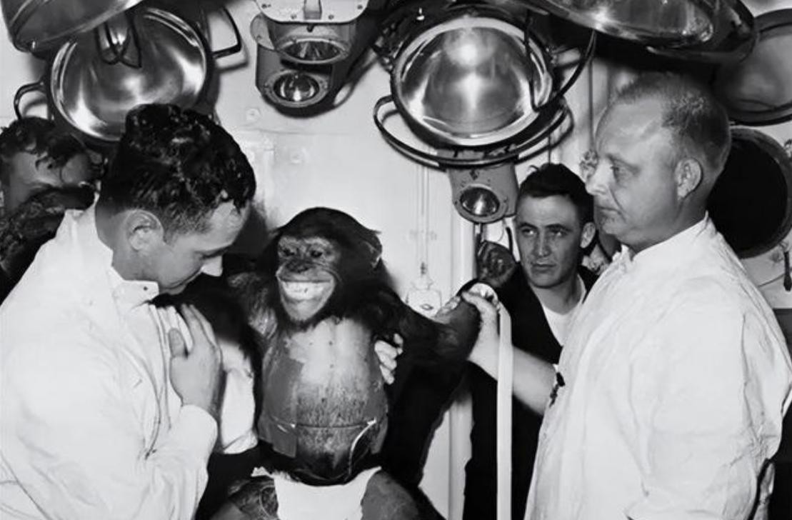 但1958年的一天,它的“猩生”发生了翻天覆地的变化,当地军方花费重金从动物园老板那里买下它,随后和其他39只黑猩猩一起送往霍洛曼航空航天医疗基地接受训练。