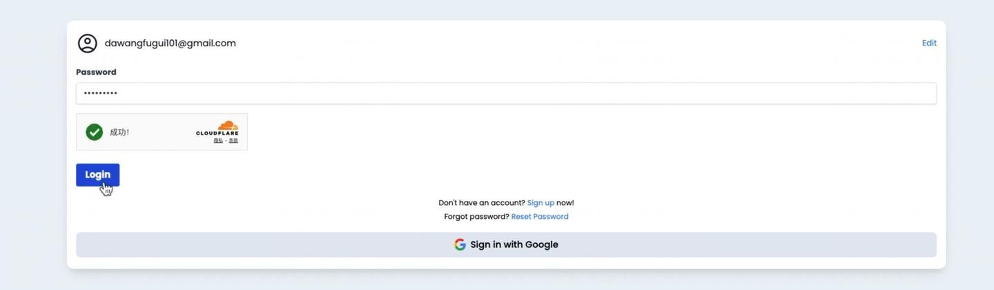 验证邮箱成功后,回到登录页面。此时需要使用您的注册邮箱进行登录,输入之前设置的密码,勾选相关的认证选项(通常是人机验证),然后点击登录。