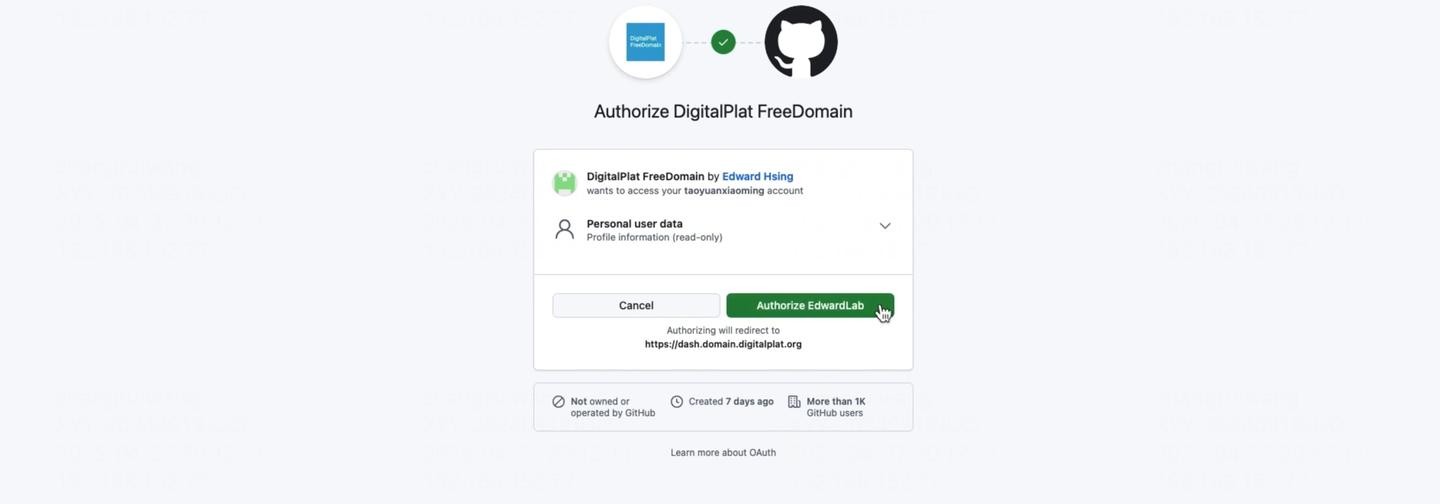 登录后,DigitalPlat 要求进行 KYC (Know Your Customer) 认证。与之前的版本不同,升级后的 DigitalPlat 大幅简化了 KYC 流程,目前仅支持使用 GitHub 账号进行认证。这比之前需要上传身份证明文件要便捷许多。