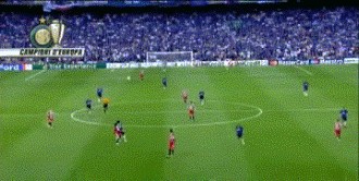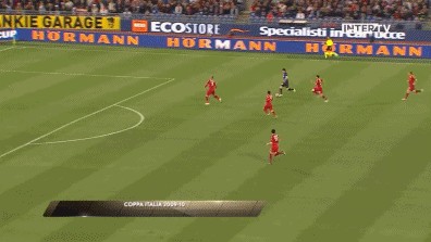 第一个进球,门将塞萨尔大脚,米利托在德米凯利斯身前卡位抢到落点,点给斯内德,然后转身快速前插,接到直塞,人群中虚晃一枪,晃的不是后卫,而是没有失位的门将,晃掉他的第一反应后,真正的射门已经无法阻挡。