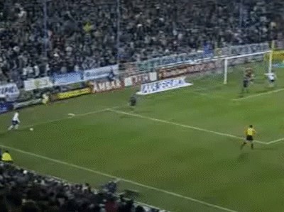 第二个进球,面对另一个中卫范比滕,米利托带球突进小半个球场,进入禁区轻轻一扣,将他过得干干净净,然后冷静兜射远角破门。