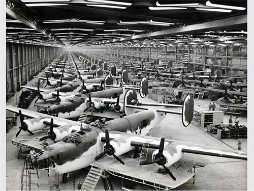 为做生意,他们不惜挤压民用消费品的生产空间,原来制造暖气设备的工厂转为生产枪炮,制造钢琴的工厂转为制造飞机机翼,为了获取更多的钢材和锡,他们甚至把主意打到了妇女的紧身胸衣和儿童玩具上。总而言之,那一时期的美国,动用了一切可调用的生产力量,只为顺利地将自己的东西,卖到欧洲战场。