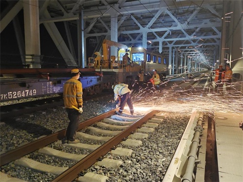 五峰山长江大桥桥面钢轨切割作业