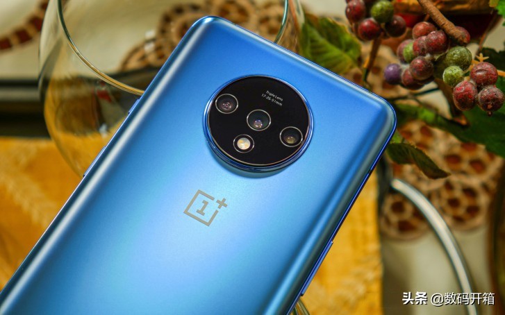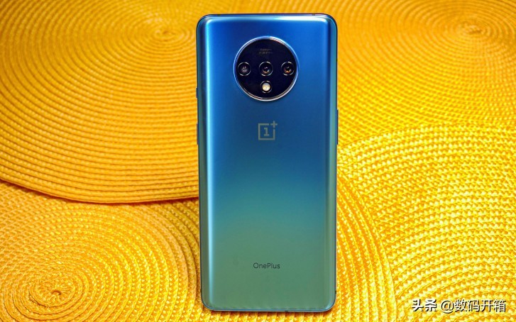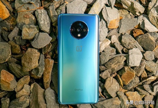 一加7T背面纹理采用的是磨砂亚光设计,并带有原始的金属光泽,其正中上方是圆形凸起环绕的后置模组,三个镜头横向排列,下方有一个闪光灯,镜头模组的下方是一个一加的logo。