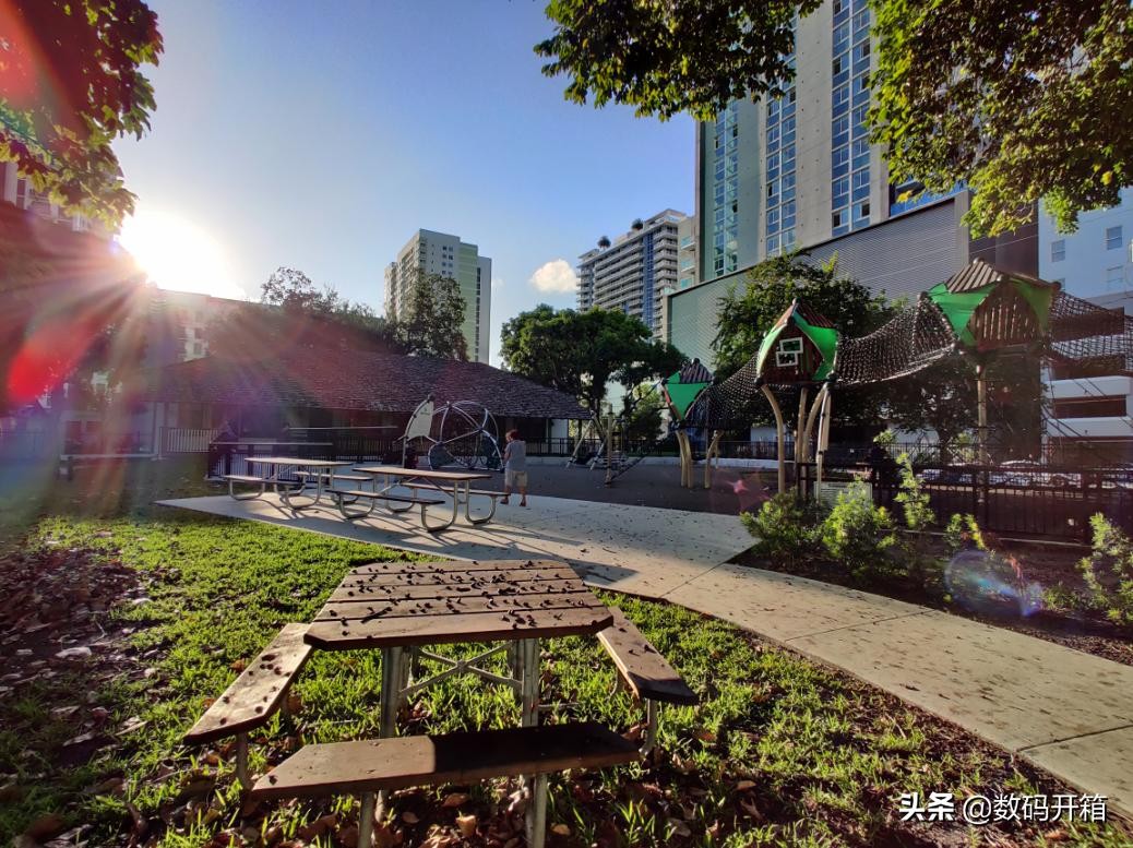 广角效果中规中矩,117度开阔视野尽管收纳了更多内容,但并不能提升细节渲染,比如阳光的光晕就过于明显,影响到了视野。