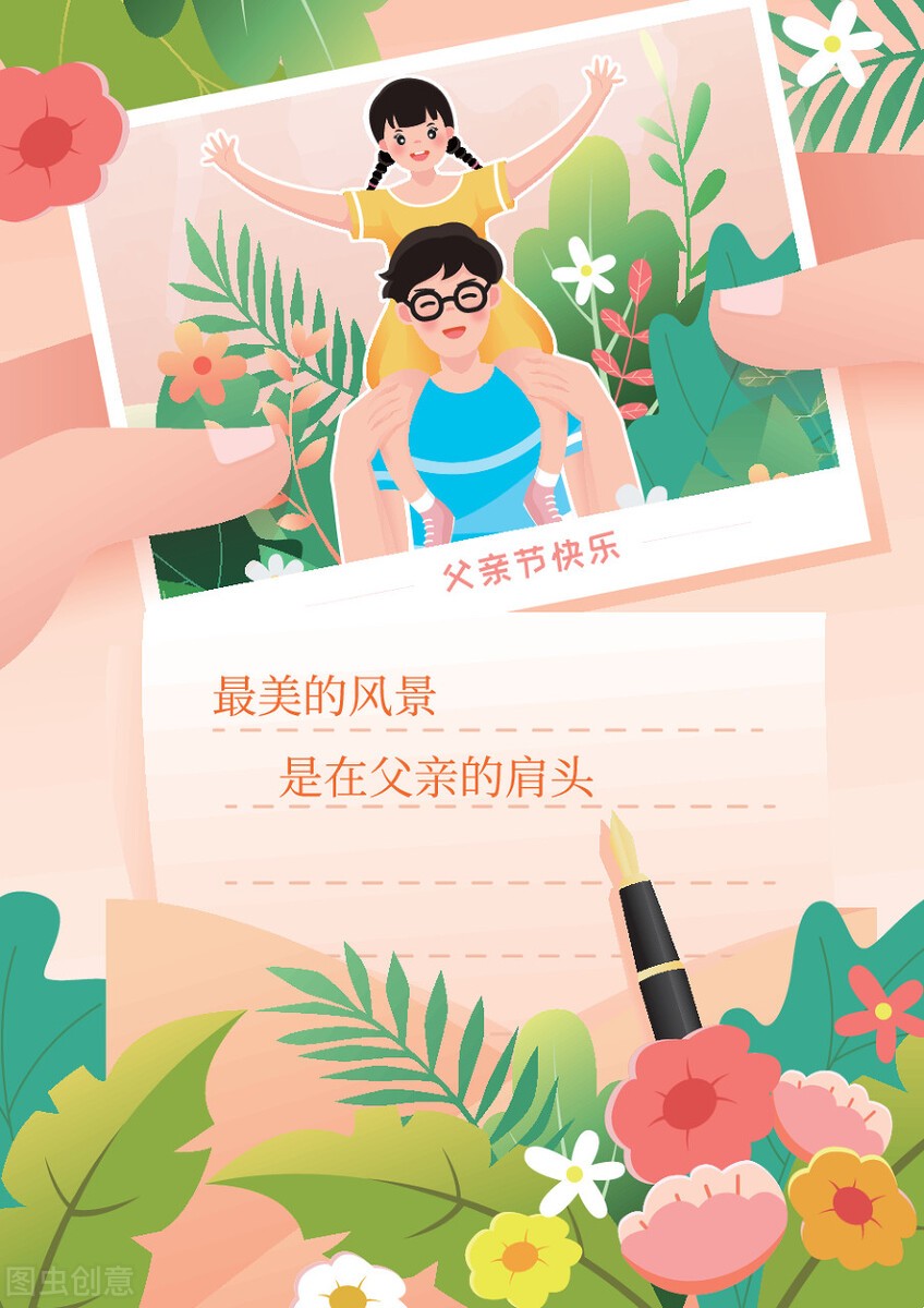 父亲,是我们一生中最重要的亲人,他不仅给我们提供丰衣足食的物质生活,而且还陪伴我们成长,给予我们心灵的安慰,让我们健康快乐的成长。