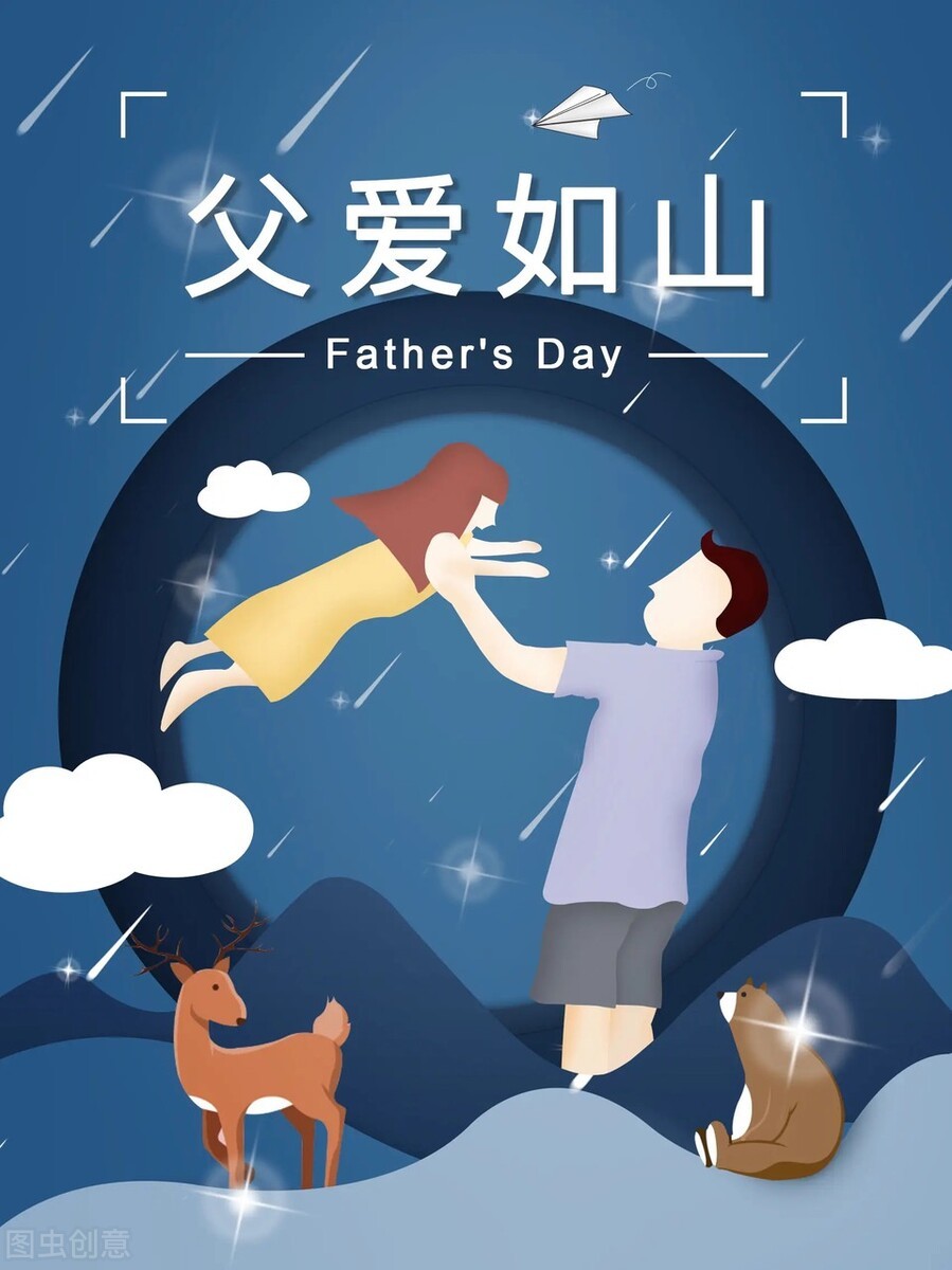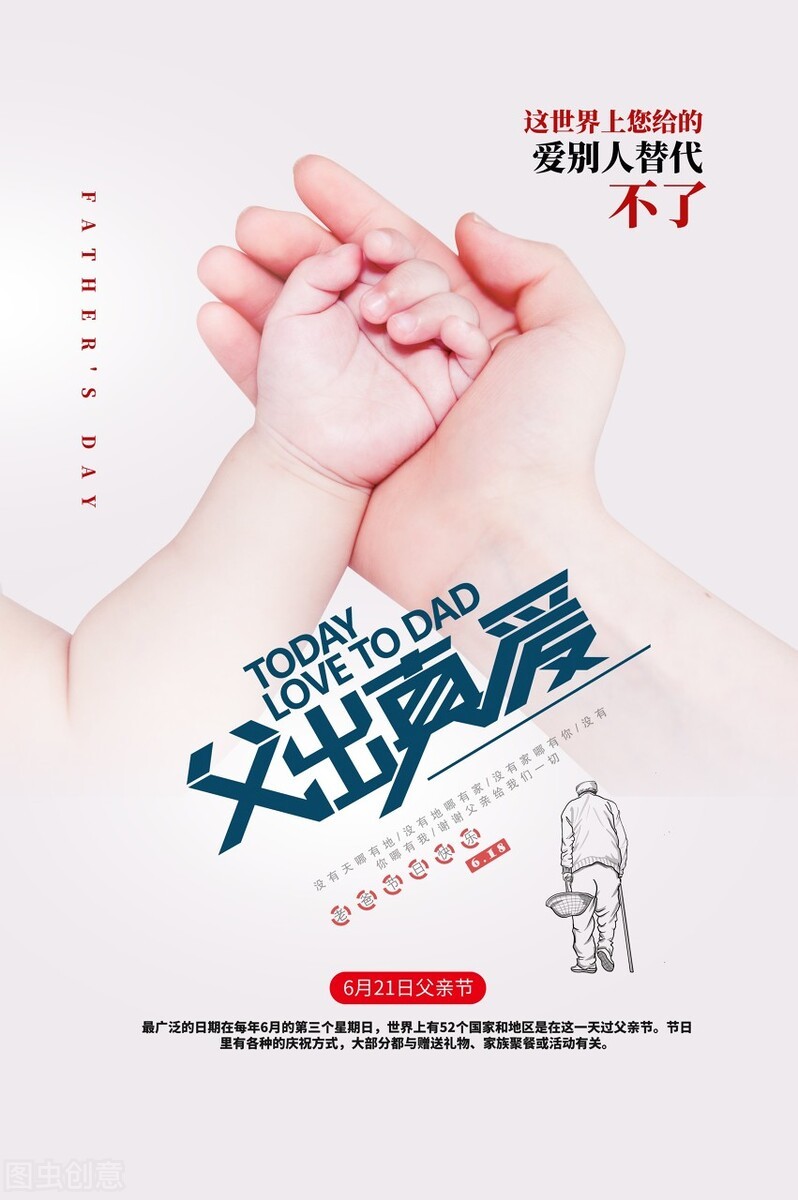 父亲节,故名思义是父亲的节日,是儿女们感恩父亲的节日。父亲节起源于美国,现已广泛流传世界各地,世界上有52个国家和地区把每年6月的第三个星期日作为父亲节。在父亲节来临之际,以此图片致敬天下所有为儿女操劳一生的父亲。也祝天下所有的父亲节日快乐!幸福安康!