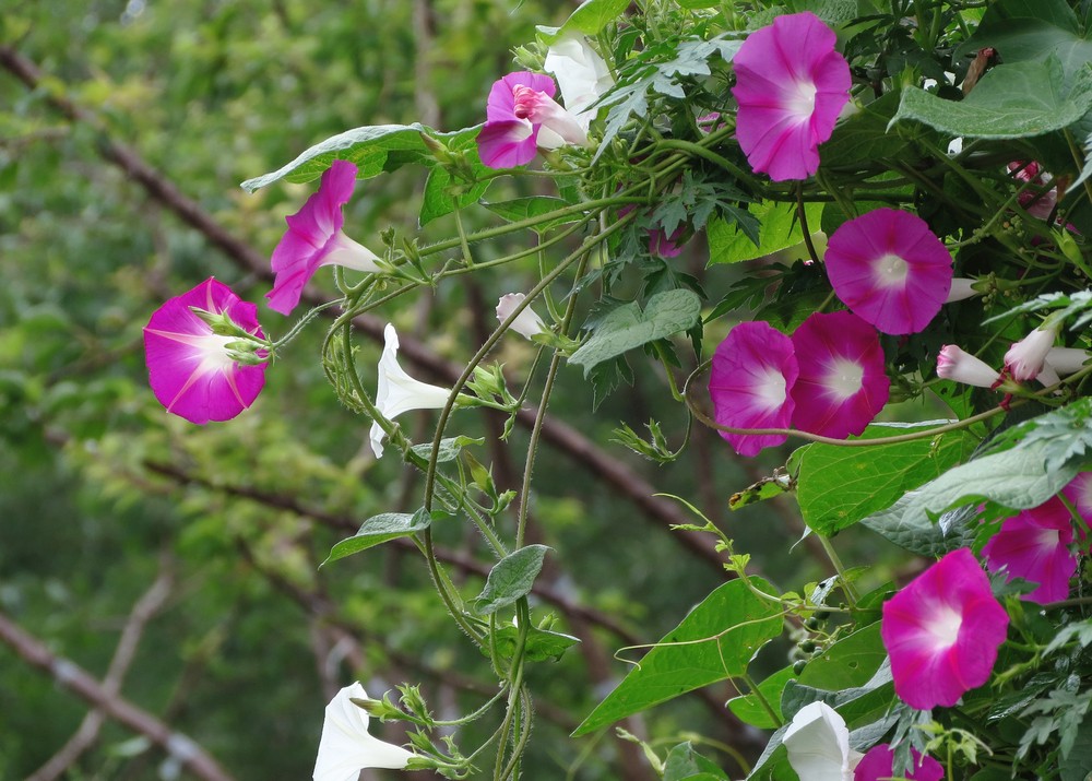 牵牛花颜色多样,非常的好看,有好多的人把它当作观赏植物来种植,种植在自家的房前屋后,菜园。