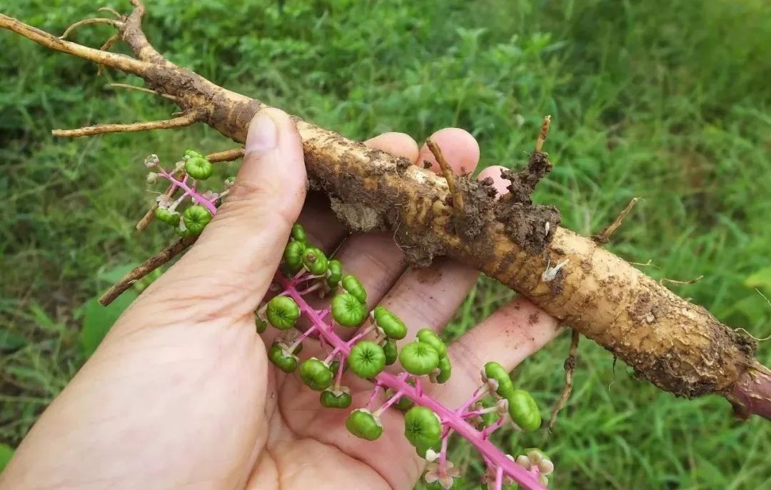 商陆在小吴家乡非常的常见,它的根拔出来非常像人参,又称假人参,这种商陆也是有毒的,都不能给猪吃的。