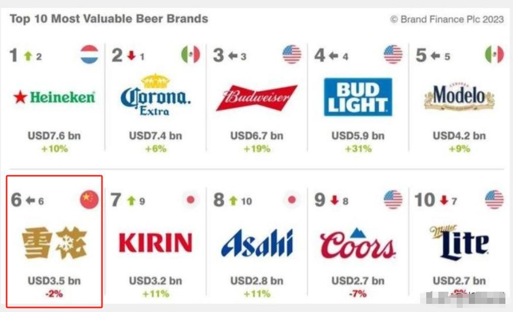青岛啤酒的竞争对手,雪花啤酒,近年来在国际啤酒排名榜单上表现出色,甚至威胁到了青岛啤酒的地位。这次事件不仅令青岛啤酒的市值受损,还给了雪花啤酒机会在国内市场迎头赶上。它仅仅差两个名次就能挤进前十,这让青岛啤酒感到压力重重。